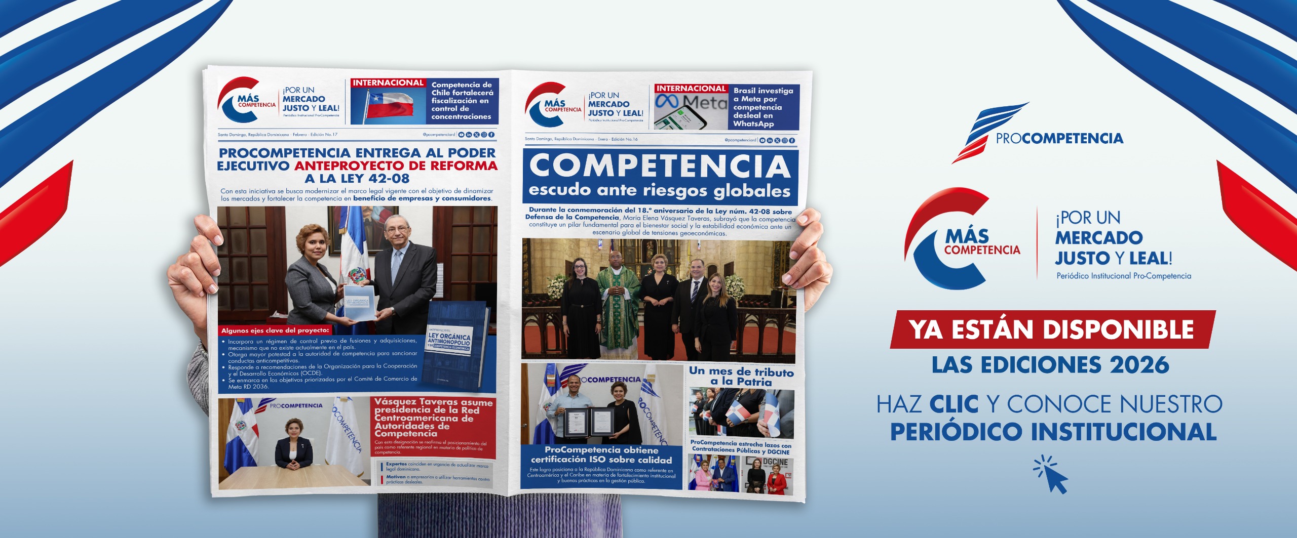 La presidenta de la Comisión Nacional de Defensa de la Competencia (ProCompetencia), María Elena Vásquez Taveras, participó en la reunión de seguimiento de la Mesa de Coordinación contra el Comercio Ilícito y la Competencia Desleal, encabezada por el ministro de Industria, Comercio y Mipymes, Eduardo (Yayo) Sanz Lovatón, con el objetivo de fortalecer las acciones interinstitucionales frente a estas prácticas que distorsionan el mercado.