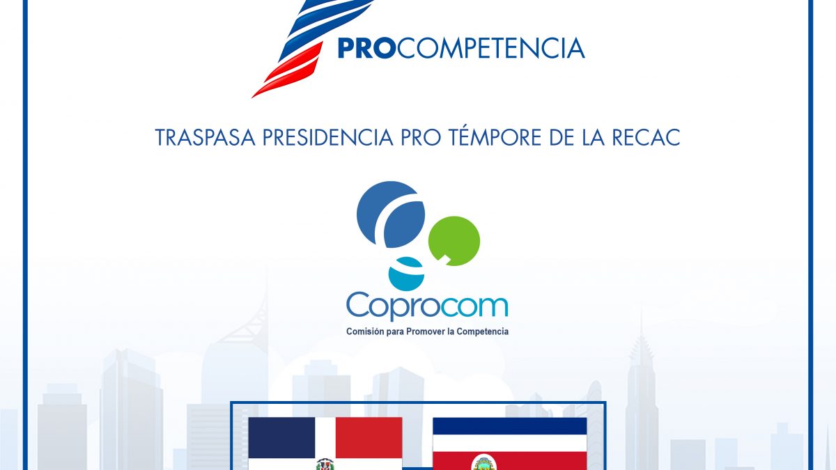 Santo Domingo, República Dominicana. 19 enero, 2021. La Comisión Nacional de Defensa de la Competencia (PRO-COMPETENCIA) traspasa presidencia pro témpore de la Red Centroamericana de Autoridades Encargadas del tema de Competencia (RECAC) a la Comisión para Promover la Competencia (COPROCOM) de Costa Rica, luego de culminar exitosamente su período del año 2020 el cual fue encabezado por Yolanda Martínez, presidenta del Consejo Directivo.