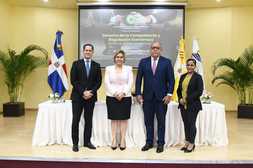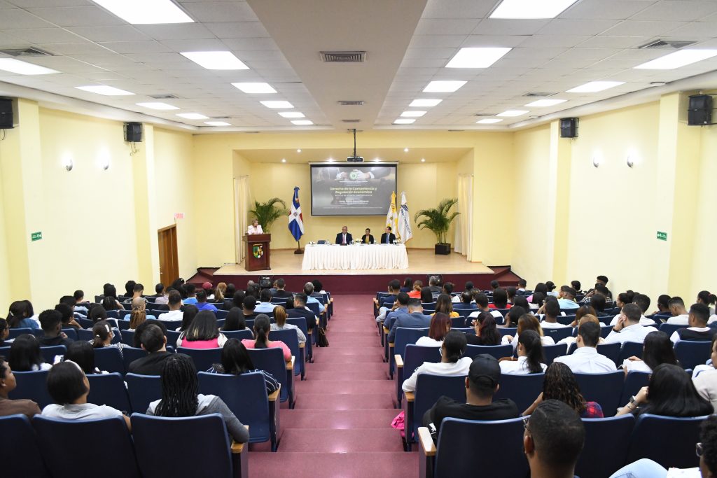 Ante decenas de estudiantes de Derecho de la academia privada, la presidenta de Procompetencia felicitó a la Facultad de Ciencias Jurídicas y Políticas de la universidad privada por organizar la conferencia porque -a su juicio- es un aporte significativo al debate sobre temas de vital importancia para el desarrollo económico y el Estado de derecho en República Dominicana.