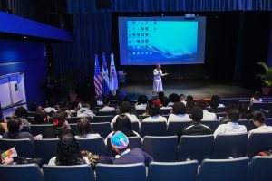 SANTO DOMINGO, D. N. Decenas de estudiantes del bachillerato del Instituto Cultural Dominico Americano (ICDA) aplaudieron este jueves 6 de octubre la charla de motivación de la presidente del Consejo Directivo de la Comisión Nacional de Defensa de la Competencia (Procompetencia), María Elena Vásquez.