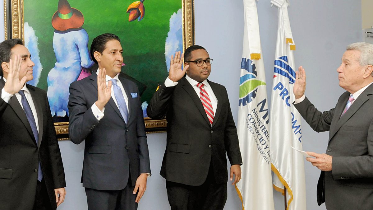 El ministro de Industria, Comercio y Mipymes, Nelson Toca Simó, juramentó este jueves a tres nuevos miembros del Consejo de la Comisión Nacional de Defensa de la Competencia (PROCOMPETENCIA), durante un acto celebrado en la sede del MICM, en esta capital.