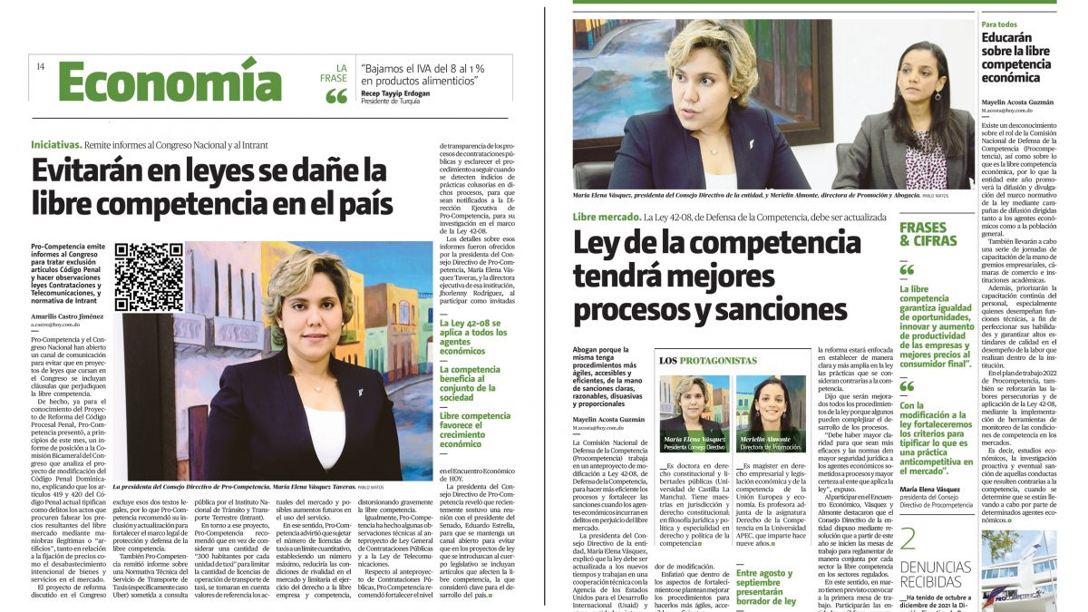 Periódico HOY destaca rol de ProCompetencia en la sociedad