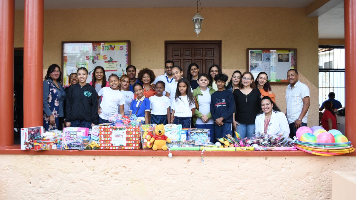 SANTO DOMINGO, D.N.- Niños y niñas que conviven en el hogar-escuela de Doña Chucha, en el acomodado sector Gascue, exhibieron a media mañana de este viernes rostros de alegría al recibir juguetes por parte del personal de la Comisión Nacional de Defensa de la Competencia (ProcompetenciaRD).